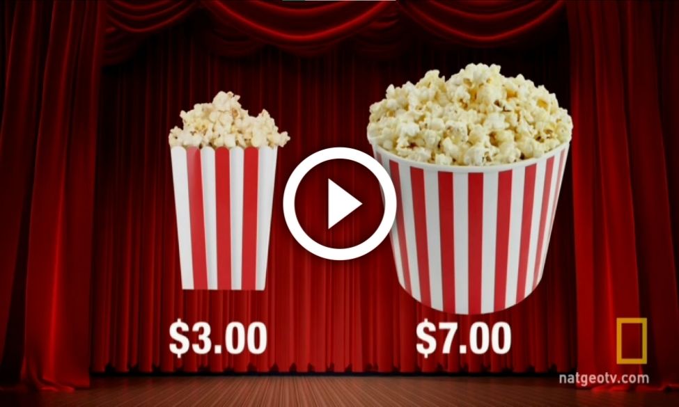 Takže, keď vlastníte kino a chcete predať čo najviac pukancov, skúste pridať o polovicu menší balíček v objeme, ale iba o trošičku lacnejší.
